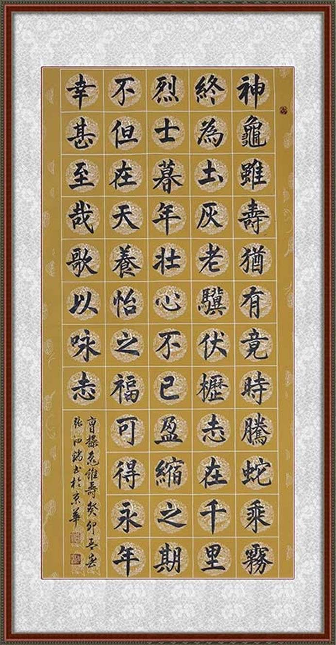 In calligraphy art, Zhang Si end adhering to the teacher OuYangZhongshi "for writing, to carry, to book huan, cut if need" learning thought, adhere to the "tradition, with the age, for self" calligraphy learning concept, adhere to the traditional calligraphy and nationality, adhere to the art for the people, the era of service direction, moral double, good character. Over the years, he has created more than 4,000 calligraphy works and participated in dozens of international and domestic calligraphy competitions and activities, with a wide range of social influence. He has won various honors and titles such as "Outstanding Contribution to the 60th Anniversary of the Founding of the People's Republic of China" by the former Ministry of Culture. In November 2019, the "Calligraphy Exhibition eulogizing the Chinese Dream and Casting the Founding of the 70th anniversary of the founding of the People's Republic of China" was held in the People's Republic of China. The Museum of the Cultural Palace of Nationalities collects two of the works as cultural relics. In the process of adult study, he worked hard in the traditional culture such as Confucianism, Taoism, Buddhism, traditional Chinese medicine and poetry related to calligraphy culture. Good at making regular script, running script, cursive script, list book, the works have outstanding personal style.